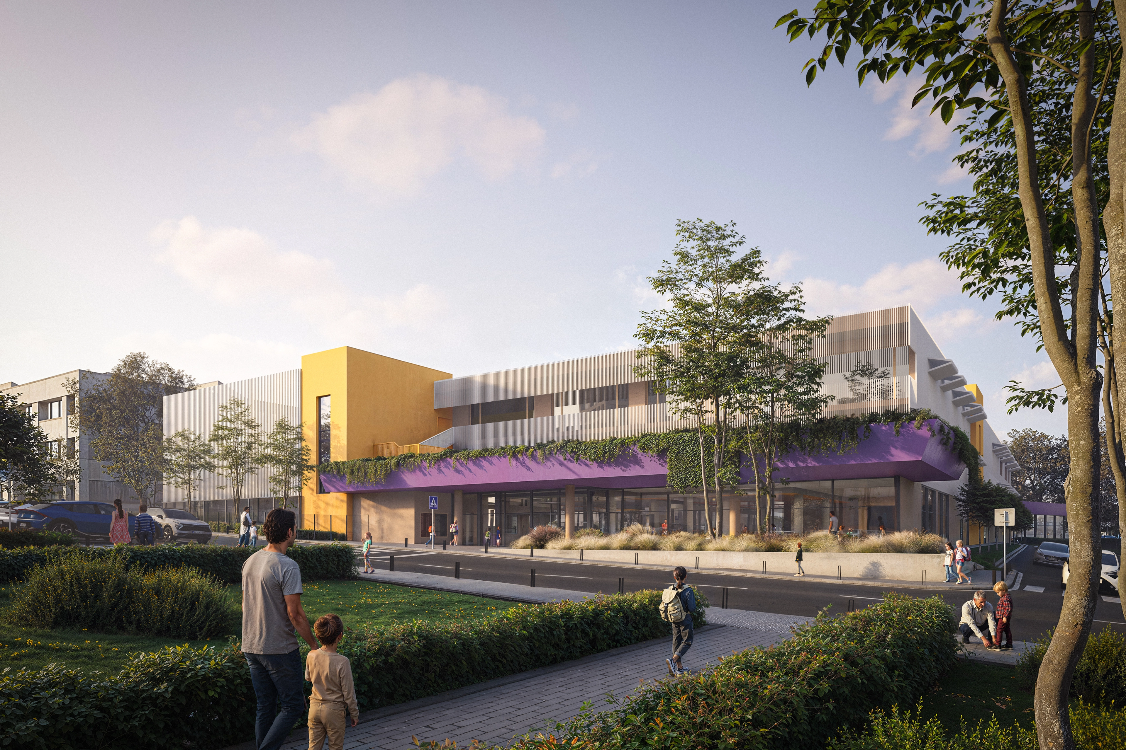 За този проект амбицията беше да проектираме повече от училище – представихме си социално значим център: живо, приветливо, „домашно“ място за цялата общност. Архитектурната концепция поставя на първо място максималната пространствена гъвкавост и целенасочената свързаност, създавайки учебна среда, която е привлекателна и желана – място, в което ученици, учители и родители наистина искат да прекарват време.