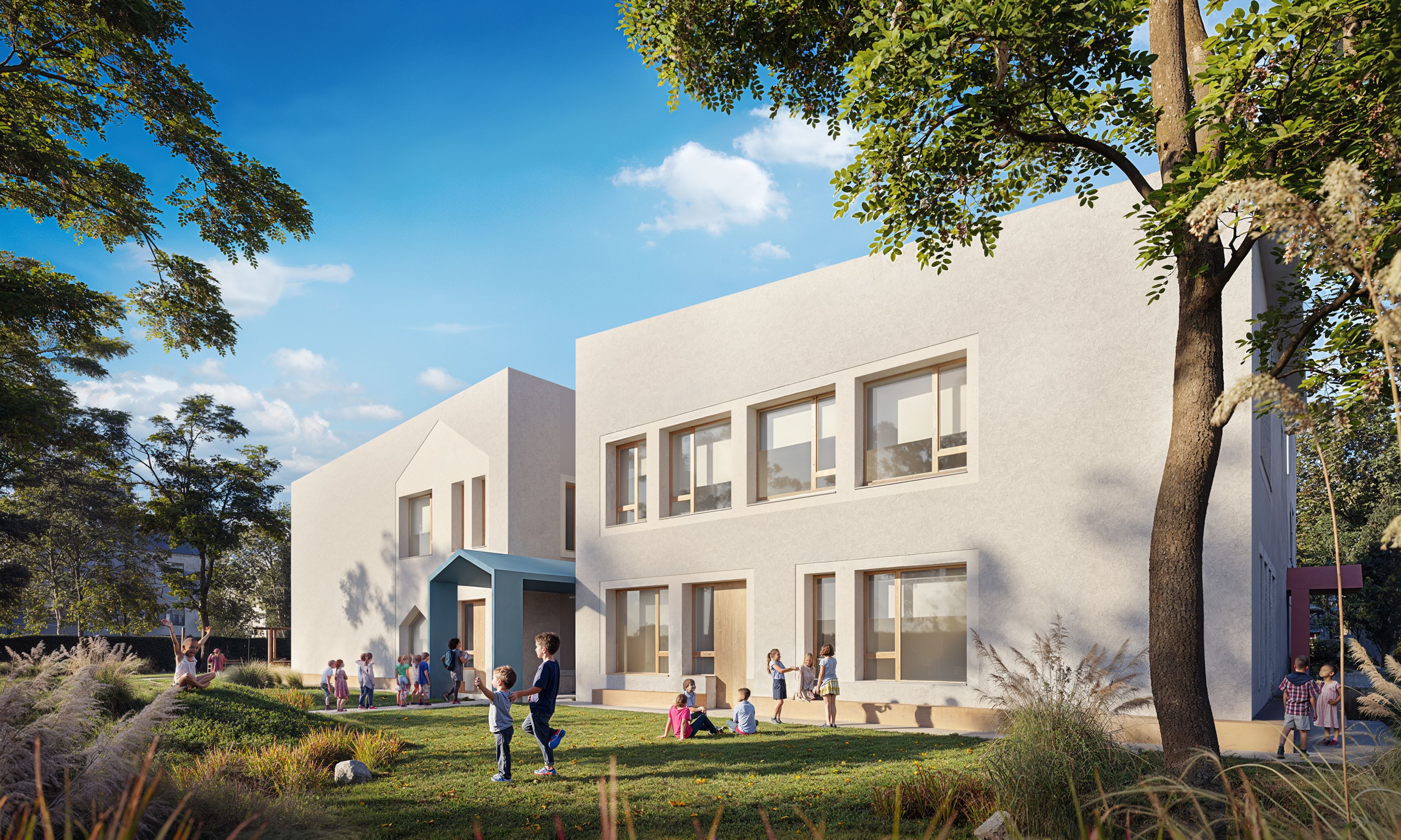 When designing this kindergarten, our main priority was to create a welcoming environment — one that feels like home and brings comfort. A key element of the concept is the graphic symbol of a house, integrated throughout the building in subtle and colourful accents. This idea is reinforced through façade solutions featuring two types of plaster textures, as well as colour coding for each individual entrance—strengthening the child-friendly character and the sense of belonging. Rather than following the traditional approach of filling kindergartens with every possible colour, our goal was to create a simple, clear, and functional building that serves as a calm canvas and a stage for children’s laughter and creativity. In this way, the children themselves become the leading “colour” in the architecture.