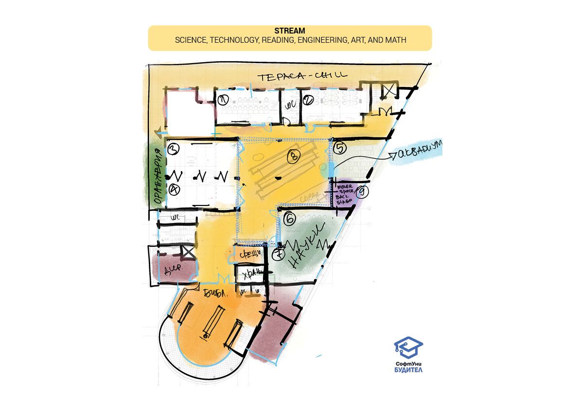 BUDITEL questions the conventional school blueprint to shape an environment that actively supports 21st-century learning. The project treats spatial design as a critical tool for building future-facing learning experiences. At the core of the transformation is a heart-centred approach: common areas were reimagined from transitional spaces into the heart of the school’s learning zones. Corridors were redesigned as adaptable learning environments—encouraging openness, sharing, and a stronger sense of safety through visibility and interaction. The concept is further strengthened through the STREAM evolution, expanding the traditional STEM focus into STREAM by formally integrating Reading and Art alongside Science, Technology, Engineering, and Math. This deliberate mix supports creativity, literacy, and more holistic problem-solving—helping shape minds that are ready for the future.